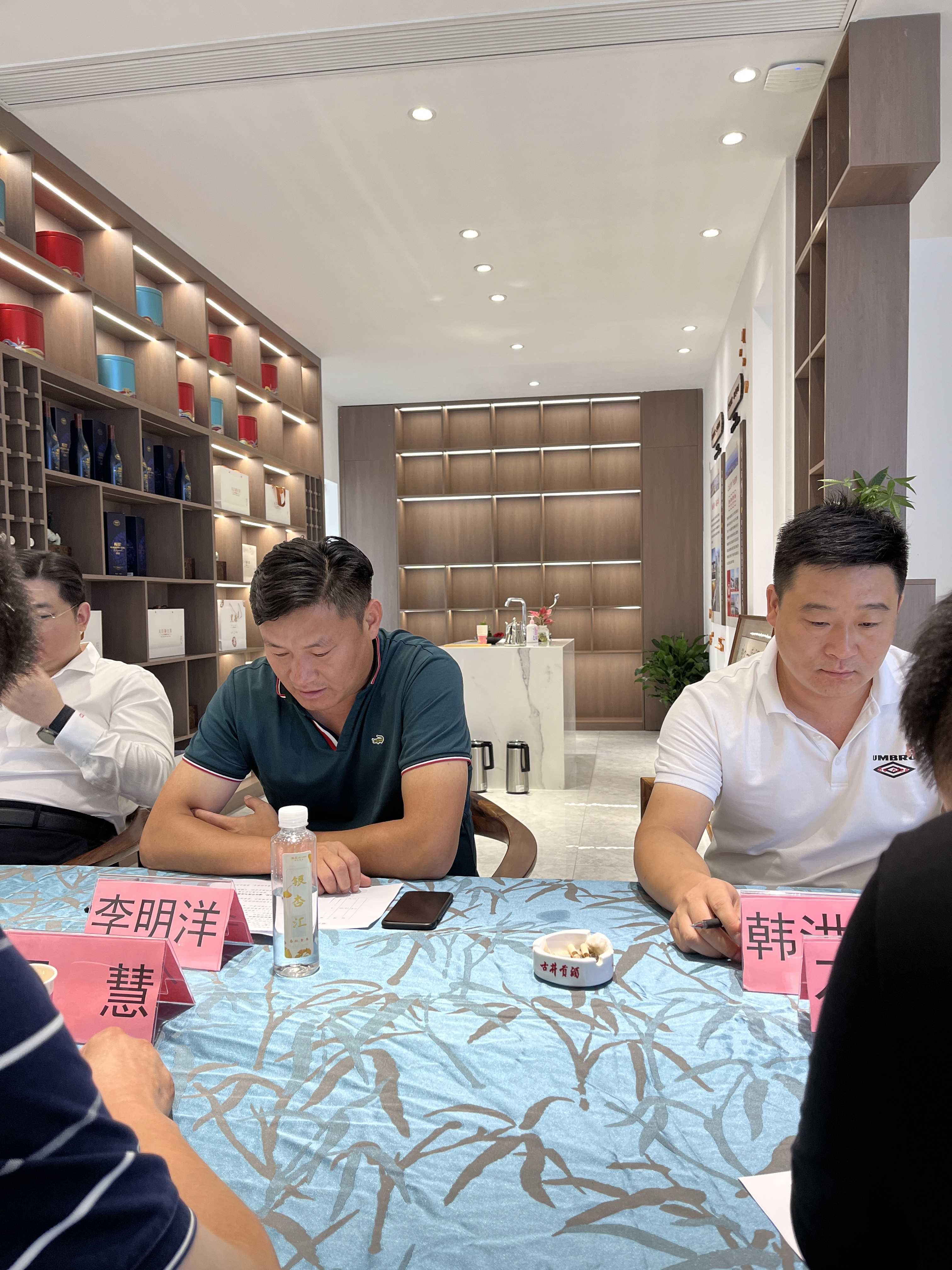 二季度轮值会长代表李明洋跟三季度轮值会长代表沈月国进行轮值会长交接仪式。