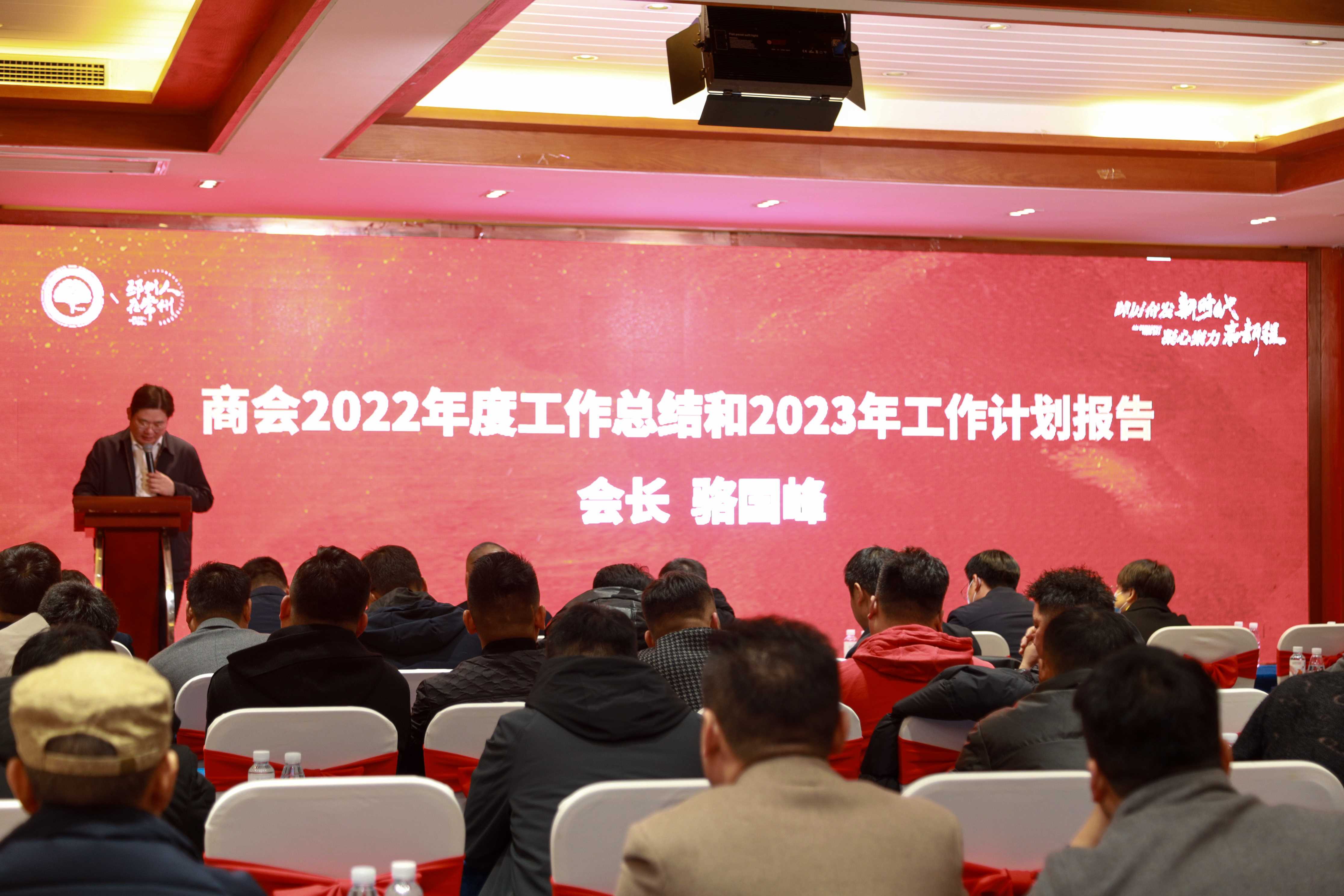 会议伊始,商会会长骆国峰作2022年度工作总结和2023年工作计划报告。